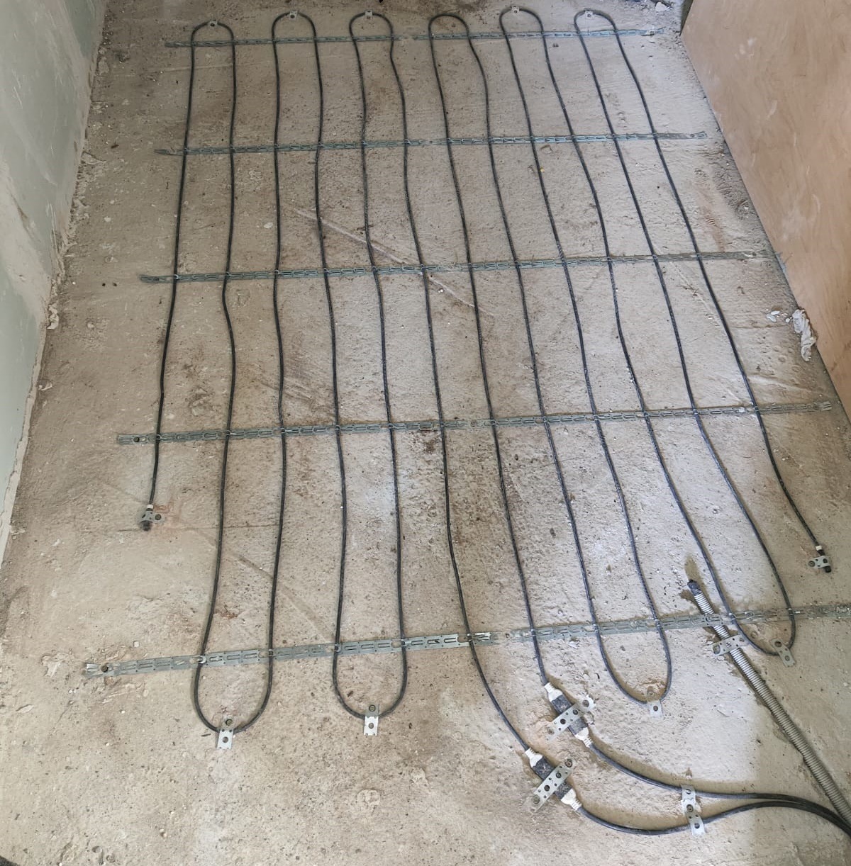 Учитывая особенности помещения и другие индивидуальные факторы, использовали в качестве системы обогрева пола резистивный среднетемпературный кабель.
