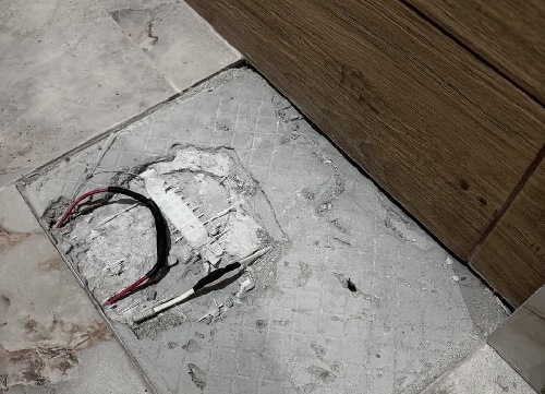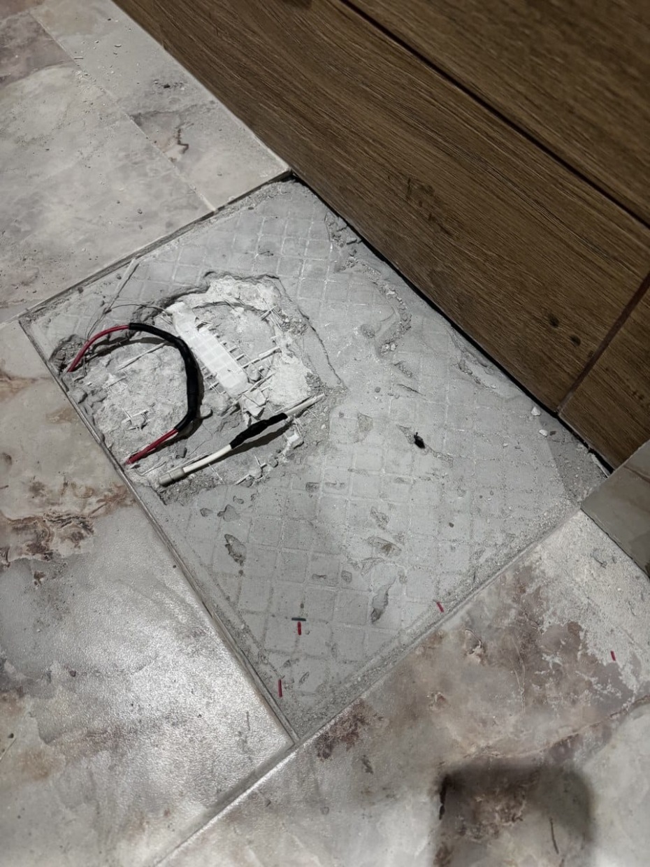 Заказчик обратился с просьбой найти место неисправности теплого пола и произвести ремонт системы. С помощью специального оборудования мы обозначили точное место повреждения греющего кабеля, демонтировали напольное покрытие и устранили неисправность. Теплый пол вновь работает в обычном режиме.