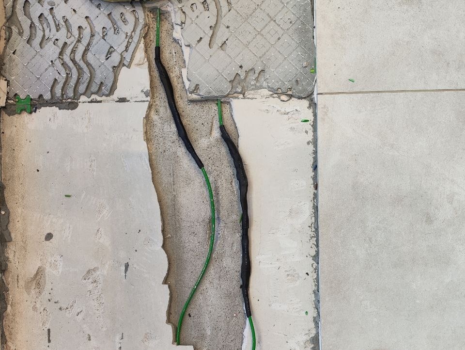 Теплый пол на лоджии, установленный под плиткой, перестал греть. Заказчик обратился с просьбой произвести диагностику и ремонт системы. С помощью специального оборудования наши специалисты обнаружили места поврежденного кабеля. В одном случае причина перегорания - при монтаже системы, в другом - дефект кабеля. На месте произведен ремонт.