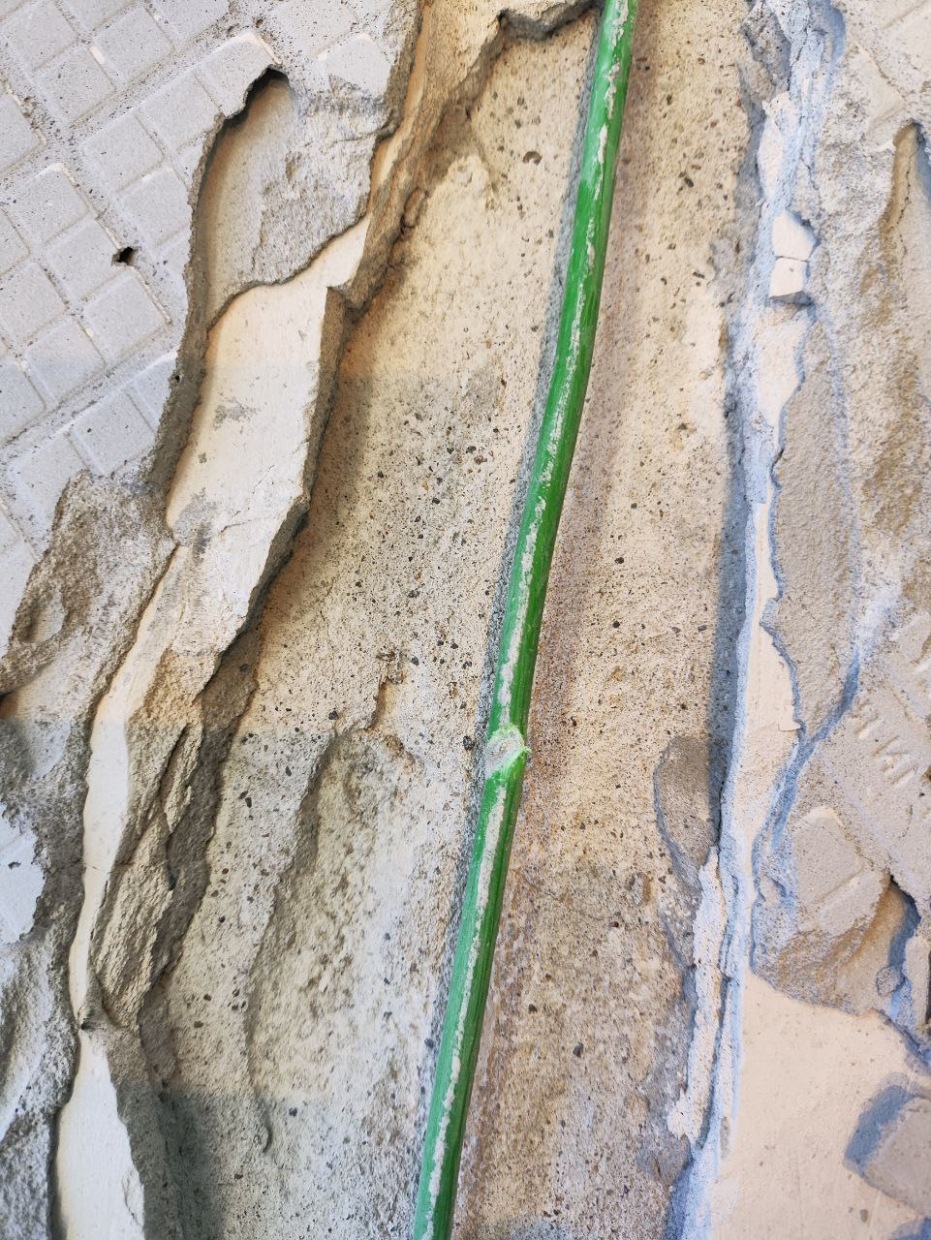 На фото: места повреждения кабеля и установленные ремонтные муфты.